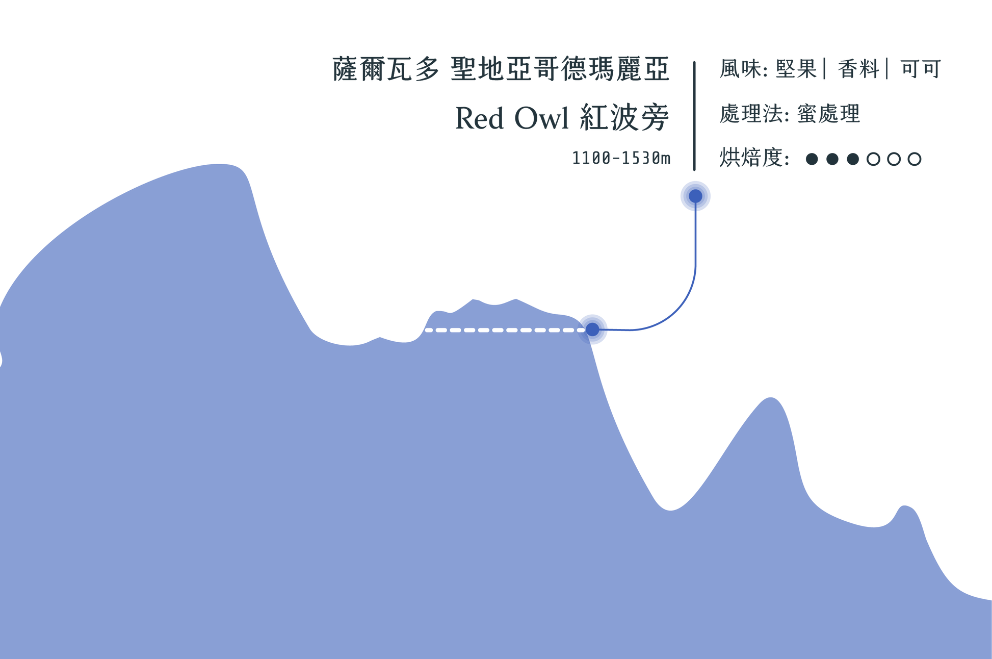 紅貓頭鷹咖啡來自薩爾瓦多聖地亞哥德瑪麗亞(Santiago de Maria)梅賽德斯莊園(Las Mercedes Tablon El Guatalon)的紅波旁品種,採用紅蜜處理法精製。此處理法保留部分果肉糖分,使咖啡呈現層次更豐富、甜感更突出的風味。入口有堅果的溫潤基調,搭配香料與可可的深度,再以柑橘的清爽酸質收尾,口感溫和平衡。這款紅蜜處理的精品豆展現了中美洲咖啡獨特的濃郁與甜潤性格。